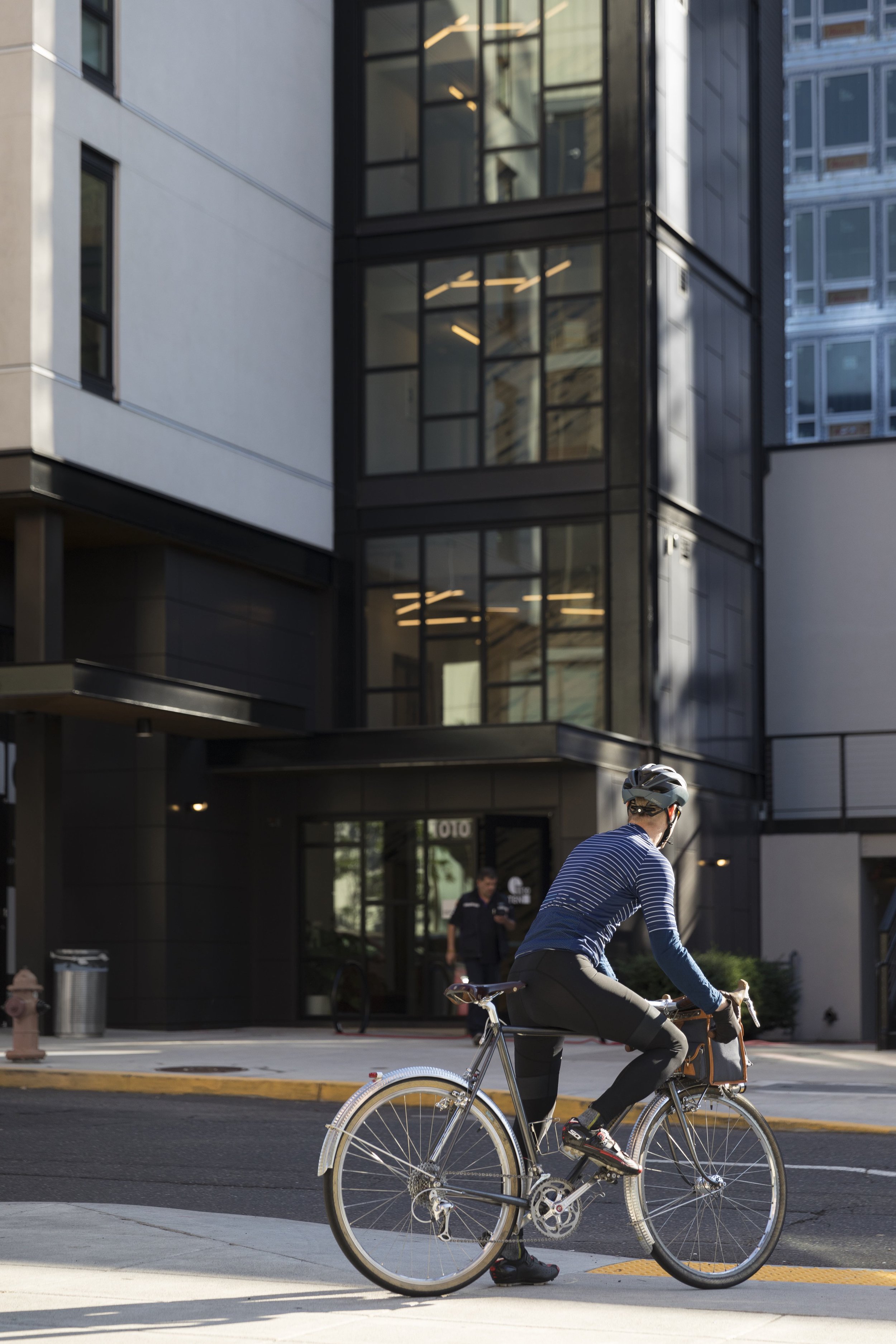 Life at the Goat Blocks is anything but cookie-cutter. 347 units are spread across four unique apartment buildings, each with their own energy and identity. Common to the four buildings is a grand and welcoming community room perfect for game nights and shuffleboard tournaments. This room also leads to a rooftop deck that overlooks the downtown Portland skyline. Daily sunrises and sunsets come standard. And a fully-equipped fitness center is available to all residents 24/7.