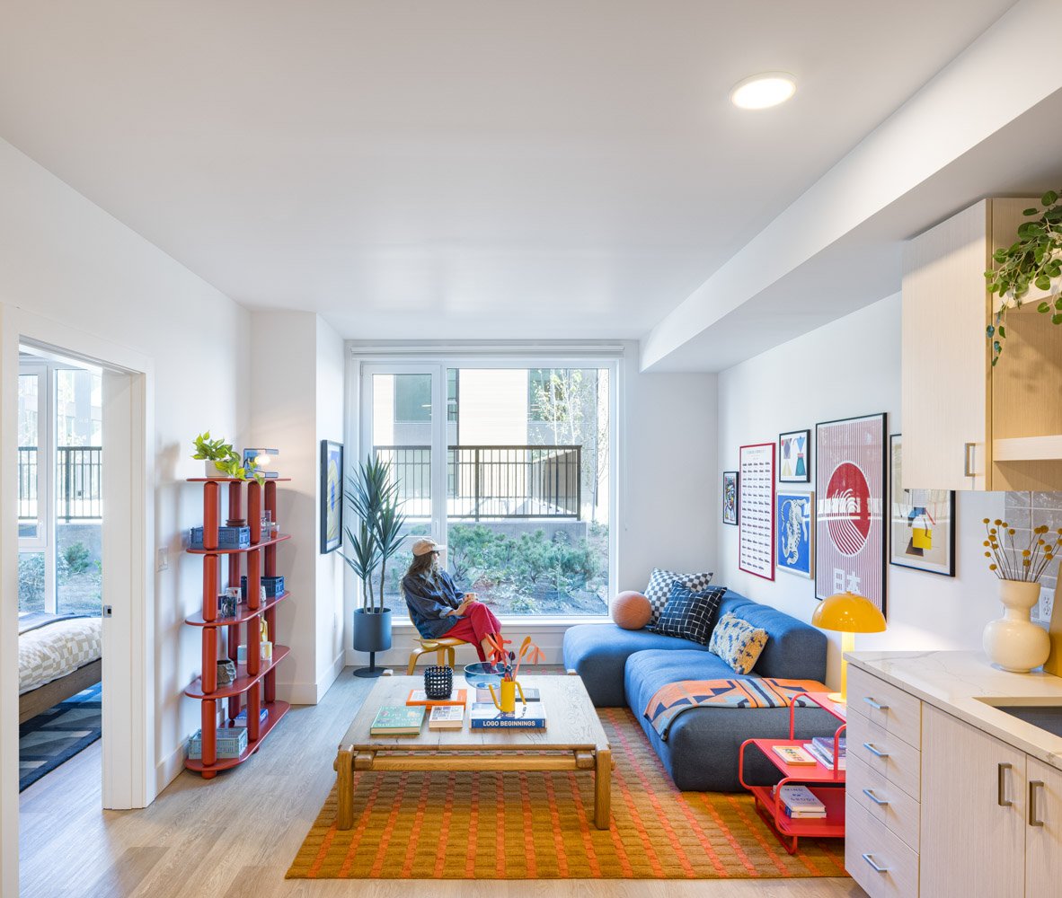 Across its 313 apartments, Jackstraw offers layouts from studios to three bedrooms, with amenity spaces that support how residents actually live: fitness, co-working, gear storage, bike repair, pet wash, and indoor-outdoor gathering spaces.